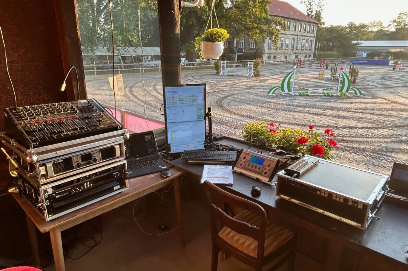 Unser Eventservice verfügt über das technische Know-how, um Reitturniere professionell zu unterstützen. Wir kümmern uns um die Tontechnik, die Zeitmessung und die Darstellung der Ergebnisse auf unserer 3,5 x 2 Meter großen LED-Wand. .